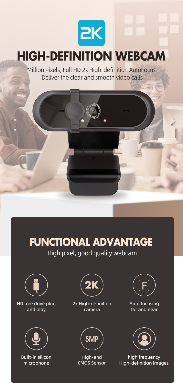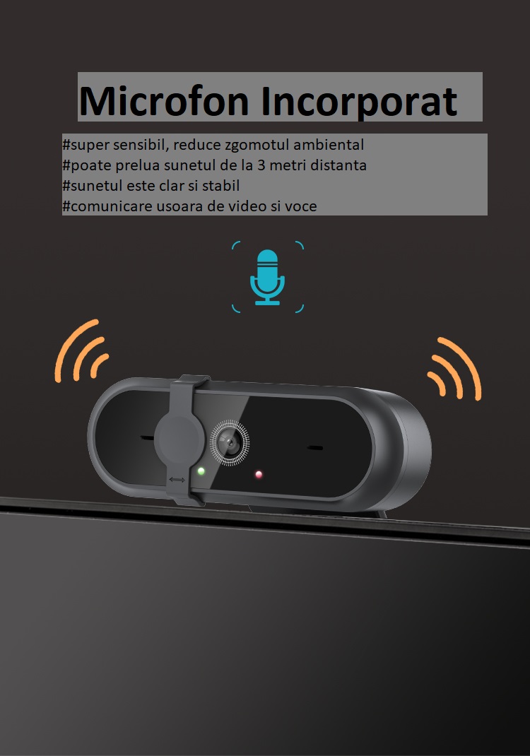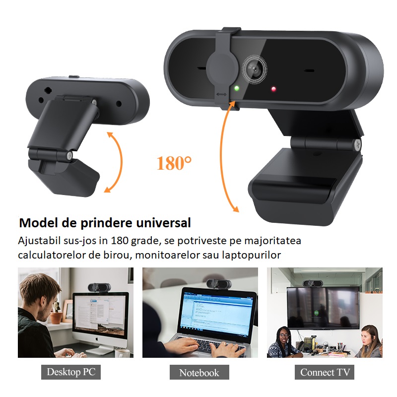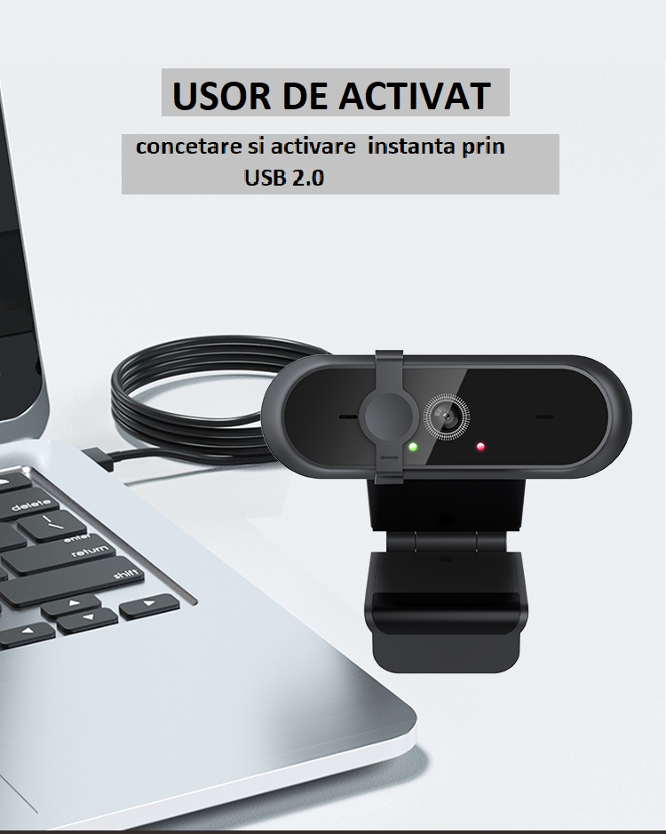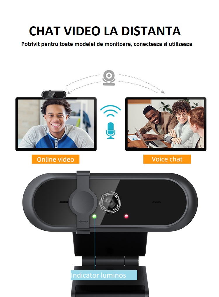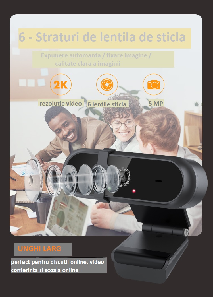 Camera Web OEM WB 800 Full HD 2K 5 MP USB 2.0, 6 lentile sticla, autofocus, anulare zgomot, microfon
